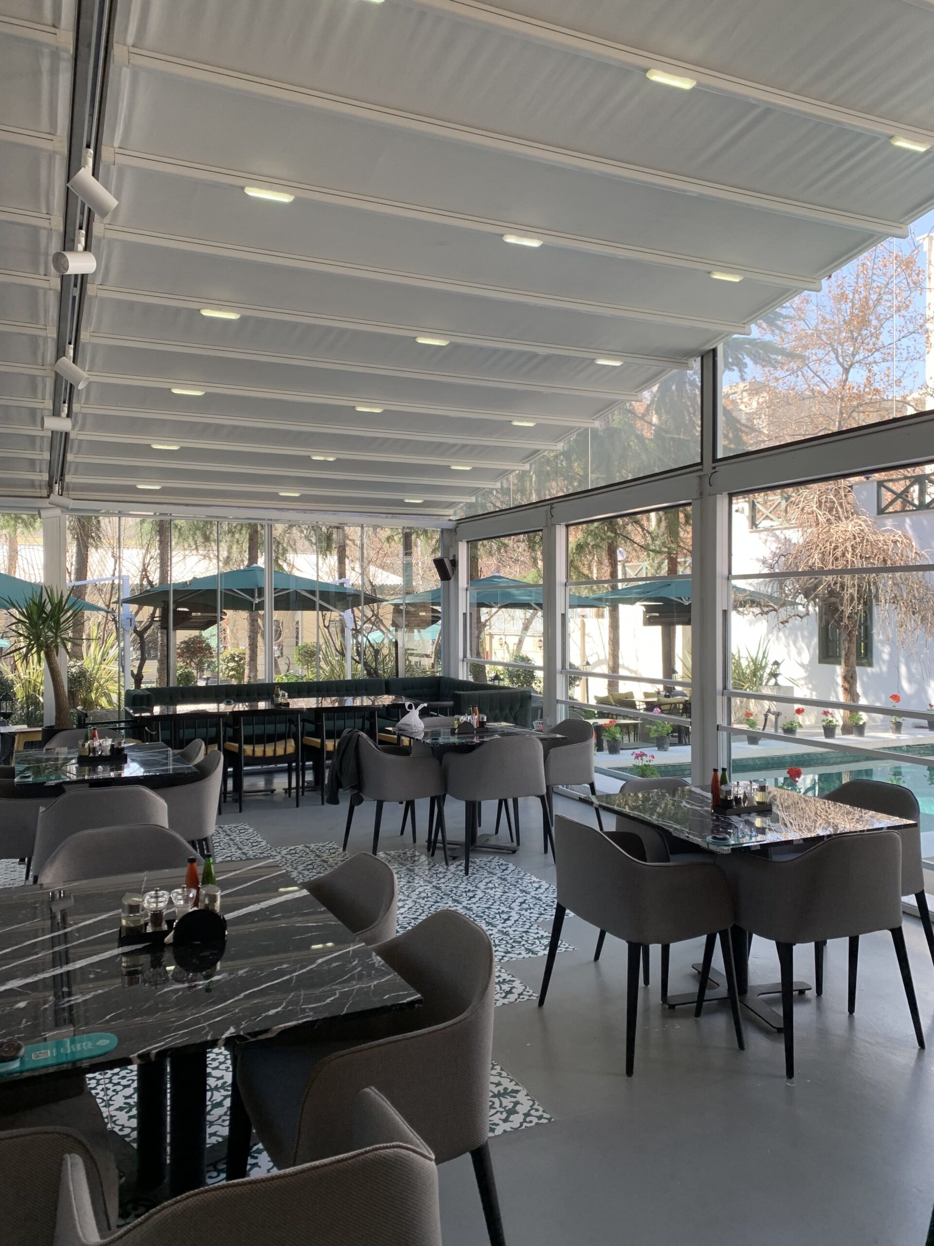 شرکت تکنو سوین با افتخار یکی دیگر از پروژههای لوکس خود را در زمینه طراحی و اجرای سقف متحرک پارچهای